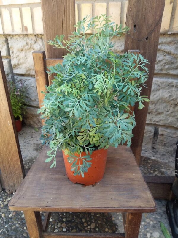 Ruta, comúnmente llamada ruda. Se suele cultivar como planta ornamental de jardín, en especial por sus hojas azuladas y por su tolerancia a suelos secos y al calor.